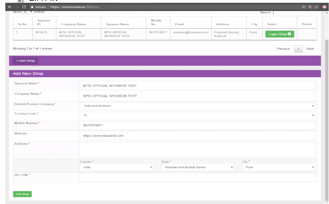 ii.            Add Shop: