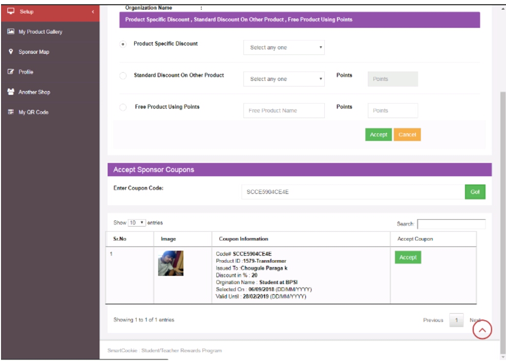 iii.            Dashboard/Accept Coupon: